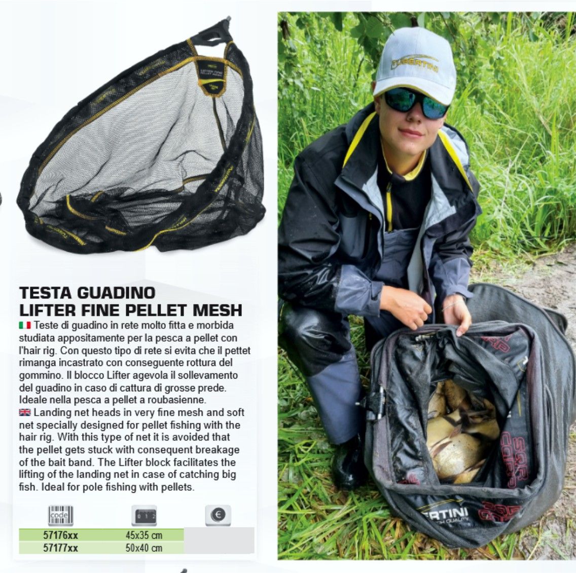 Síťky na podběráky s jemnou síťovinou a měkkou konstrukcí, speciálně navržené pro lov s peletami a hair rigem. Tato síťka zabraňuje tomu, aby se pelety zasekávaly, což by mohlo vést k přetržení návazce. Lifter blok usnadňuje zvedání podběráku při lovu velkých ryb.