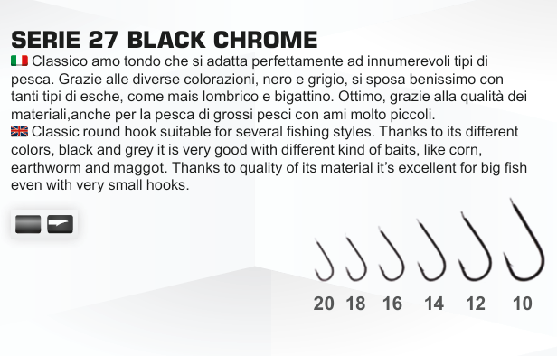 Klasický kulatý háček, co se hodí na vícero rybářských stylů. Háčky mají černou barvu a skvěle se kombinují s různými nástrahami, jako je kukuřice, žížala nebo larva. Díky kvalitnímu materiálu je parádní i na velké ryby, a to i s fakt malými háčky.