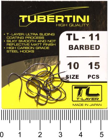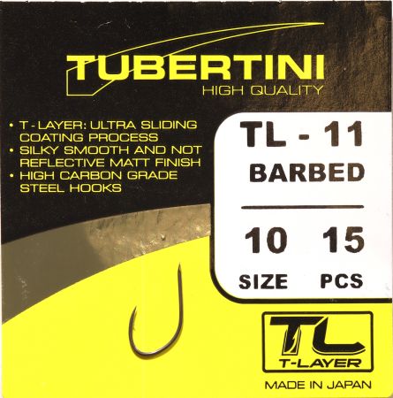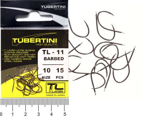 Háček s lopatkou, se středním ramínkem, kulatý, s kónickým a mírně zahnutým hrotem. Háček s T-Layer. Střední drát, střední nožka a zapuštěný hrot. Může být široce používán při různých typech rybolovu, pro velké cejny. Občas si rybáři hodně stěžují na prázdné záběry, vyberte háčky z řady T-Layer, dle Vašeho způsobu lovu a vyzkoušejte. Rozdíl poznáte ihned.