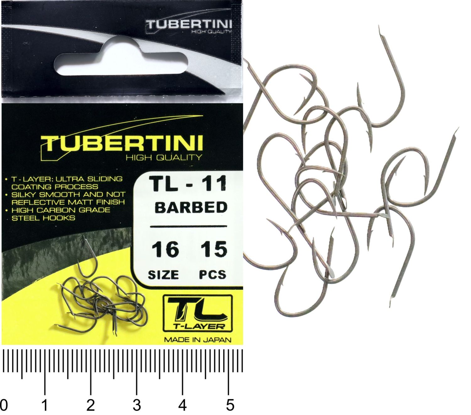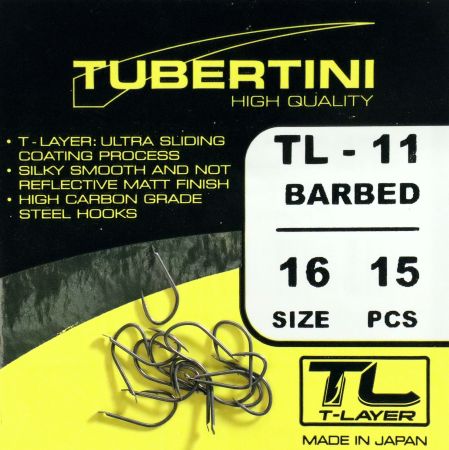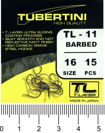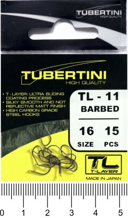 Háček s lopatkou, se středním ramínkem, kulatý, s kónickým a mírně zahnutým hrotem. Háček s T-Layer. Střední drát, střední nožka a zapuštěný hrot. Může být široce používán při různých typech rybolovu, pro velké cejny. Občas si rybáři hodně stěžují na prázdné záběry, vyberte háčky z řady T-Layer, dle Vašeho způsobu lovu a vyzkoušejte. Rozdíl poznáte ihned.