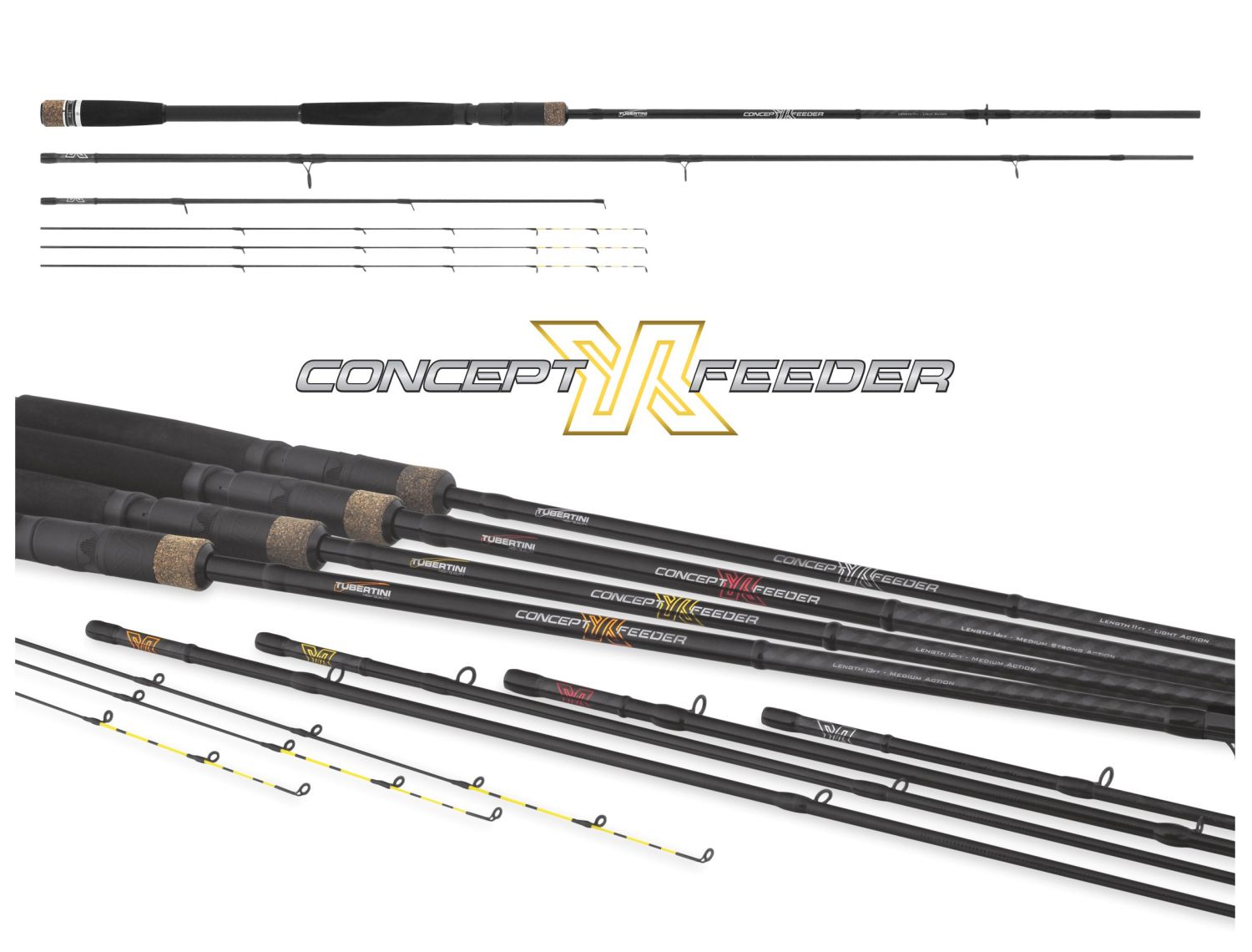 Vysoce kvalitní feederová řada, vyrobená z karbonu se střední hustotou, blank je radiálně potažený dvojitou vrstvou ultra lehkého karbonu. Tenké blanky jsou lehké a se skvělou akcí. To jsou vlastnosti, které tyto pruty odlišují od ostatních. Pruty mají 3x, 3mm špičky z materiálu Solid Carbon různé síly, s ultra lehkými očky Minima a kvalitním šroubovacím sedlem pro naviják. Concept X je absolutní novinkou. Povrchové úpravy jsou jemné, z uhlíkové tkaniny s prvky R Grip a velmi elegantní rukojetí.